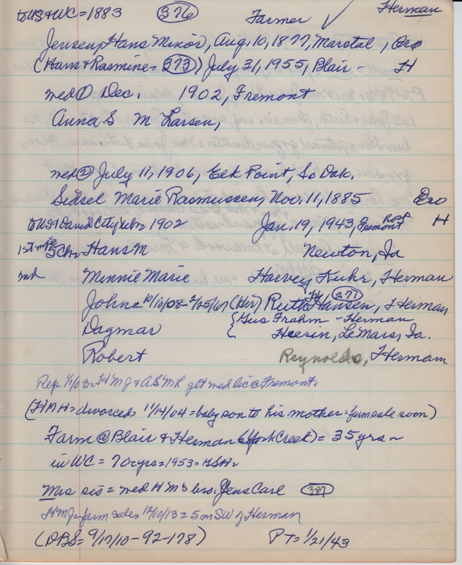 Also in collection: Hans & Rasmine - 373, Ruth H. Hansen - 271 and Mrs' sis wed bro Jens Carl - 387