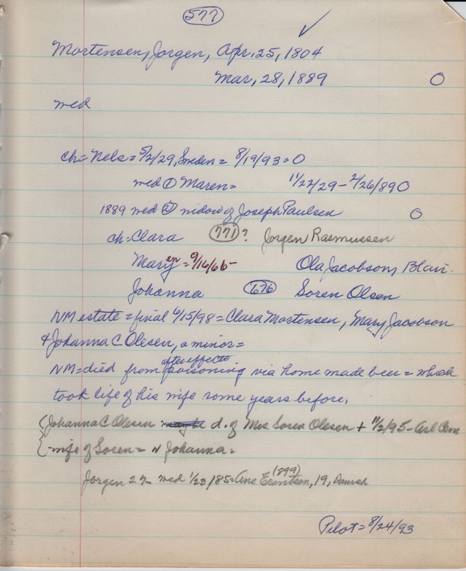 Also in collection: Jorgen Rasmussen (married child, Clara?) - 771, Soren Olsen - 676